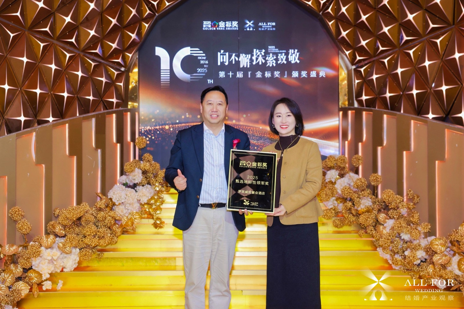 结婚『金标奖』,由结婚&宴会产业的风向标媒体《结婚产业观察》于2016年发起创办,经过10年的发展与积淀,获得了广泛关注和认可,已成为中国结婚&宴会产业影响深远和认可度极高权威奖项!