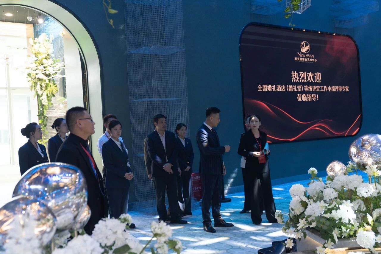 2025年9月22日,由全国婚礼酒店星评组评审办公室主任 朱若槿 女士带队,评审员 任亭 女士、李旗星 先生、周紫薇 女士、张学冰 先生 组成的评审专家组,在新天鹅宴会艺术中心 董事长 刘阳 先生、总经理 刘宇恒 先生 及公司管理层的陪同下,对新天鹅宴会艺术中心开展全国星级婚礼酒店现场评审工作。