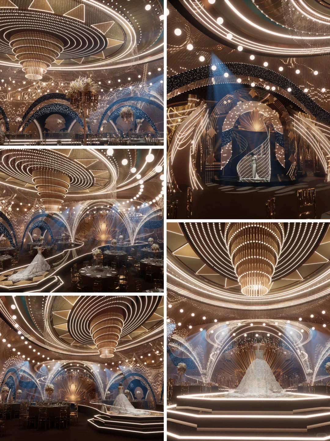 2.5万㎡艺术空间,9大主题宴会厅各藏洞天——逐星极光揽银河入怀,云中宫阙承古韵风华,水晶凡尔赛缀满流光,每一间都是百万级美学力作。9米挑高无柱视野,让誓言在开阔里回响,让目光所及皆为心动。