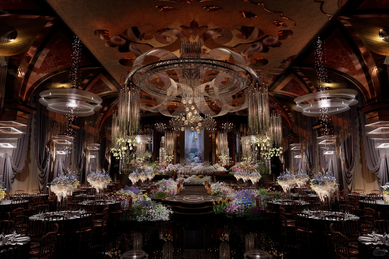 灵感源自牡丹的国色天香与盛世芳华,以唐代文化为根基,融合牡丹的雍容华贵与传统婚礼的仪式感,通过历史考据与现代美学创新结合,旨在打造一场既充满东方古典韵味,又不失现代奢华格调,兼具文化深度与视觉震撼的婚礼盛宴。