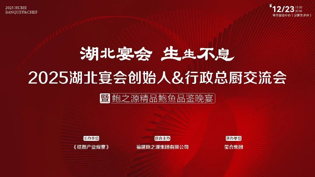 2025湖北宴会创始人&行政总厨交流会,将于12月23日(周二 13:30-20:30),在玺合宴会中心(汉阳艺术店)举办。