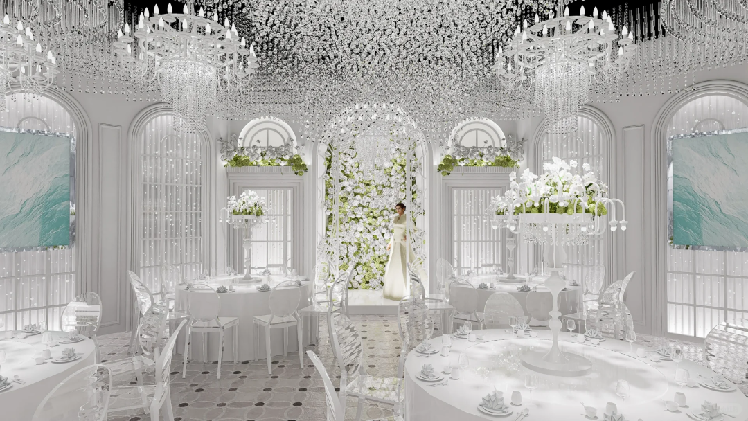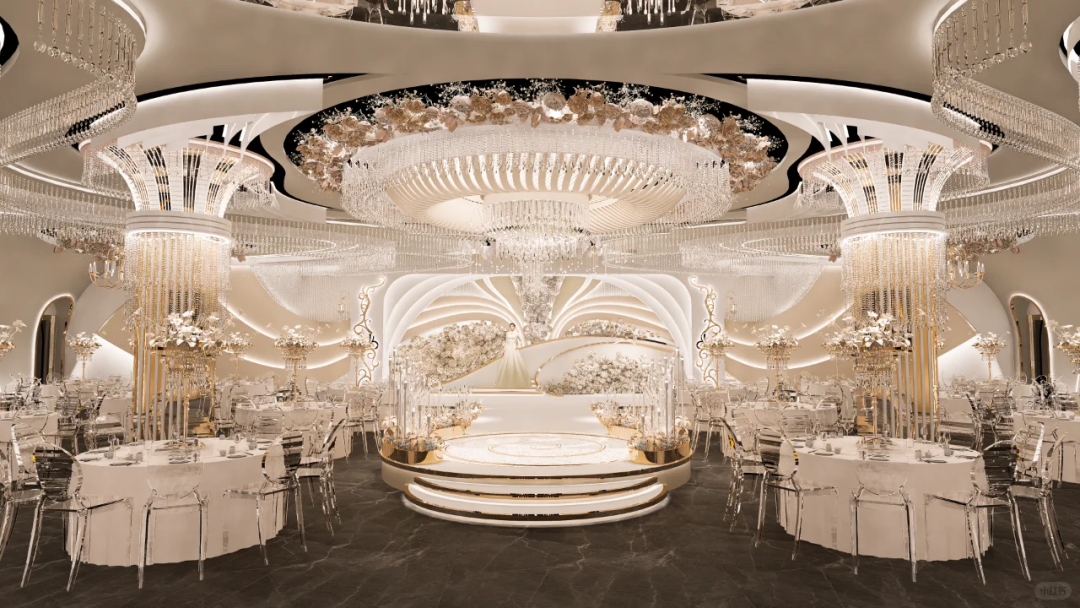 这里不仅仅是一场简单的宴会,更是一次穿越时空的极致浪漫之旅。在这个美妙的空间里,古典与现代元素相互交织,传统与自然、奢华完美融合。
