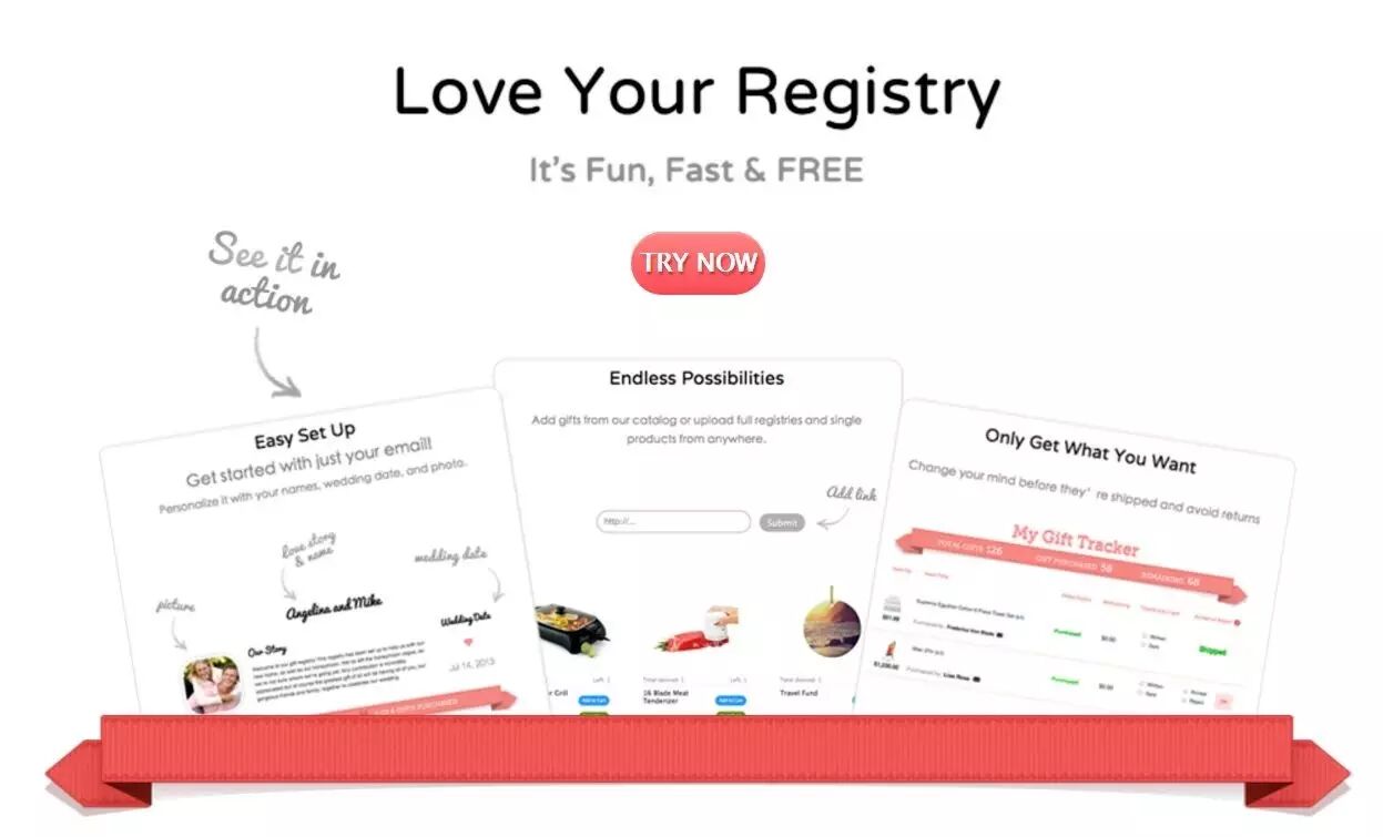 基本简介:是一个在线婚庆礼品自选购物平台,颠覆了传统婚庆行业的线上婚庆礼品购物模式,允许用户从不用的网站和商店选择礼品,或者是上传照片或者是描述自己想买但没法买到的礼物。RegistryLove 的想法很简单,你可以在这里添加自己想要的东西,例如餐具、活动、度蜜月凡是与婚庆有关的你都可以把自己的愿望添加进去,RegistryLove 通过你提交的愿望来帮助你实现。
