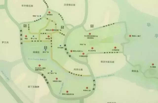 此外,松江将重点开发“华庭湖—沈泾塘—张家浜”沿线,串联起“泰晤士小镇-大学城-广富林-辰山植物园”,使之成为一条欣赏两岸景观。由此可见,整个泰晤士小镇成为松江旅游规划的一个重要节点。同时,相比辰山植物园、欢乐谷、广富林遗址公园、佘山景区和月湖雕塑公园等观光型项目,泰晤士小镇正好落于区域旅游休闲度假的节点上。
