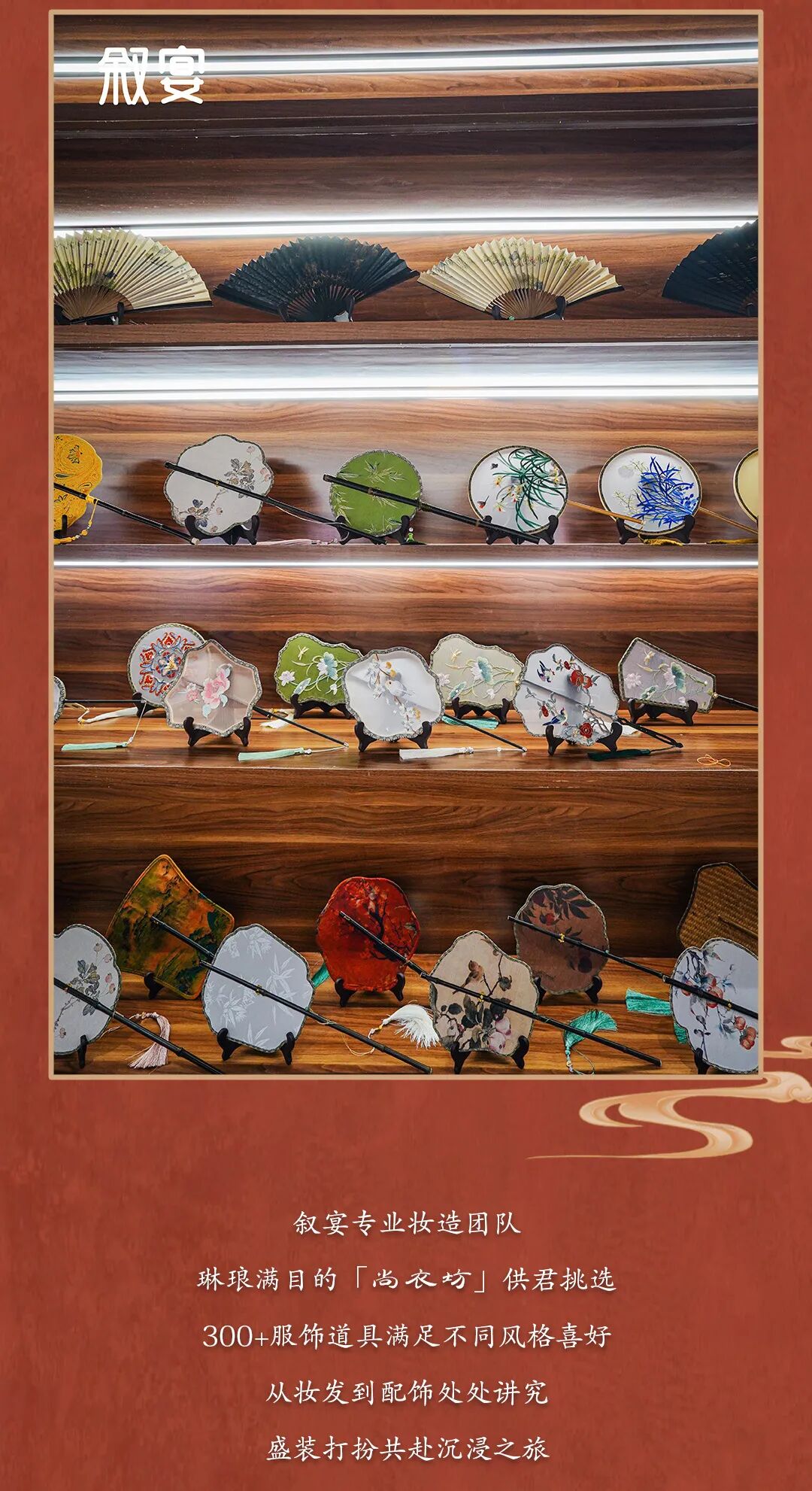 步入诗宴,恍若踏入千年盛景。妆造司内,琳琅华服重现悠悠千年的璀璨霓裳,专业的妆造师会根据您所选服饰及喜好量身定制适宜妆造,公子丽人皆可在此换装入席,共赴千年国韵下的恢宏浪漫。
