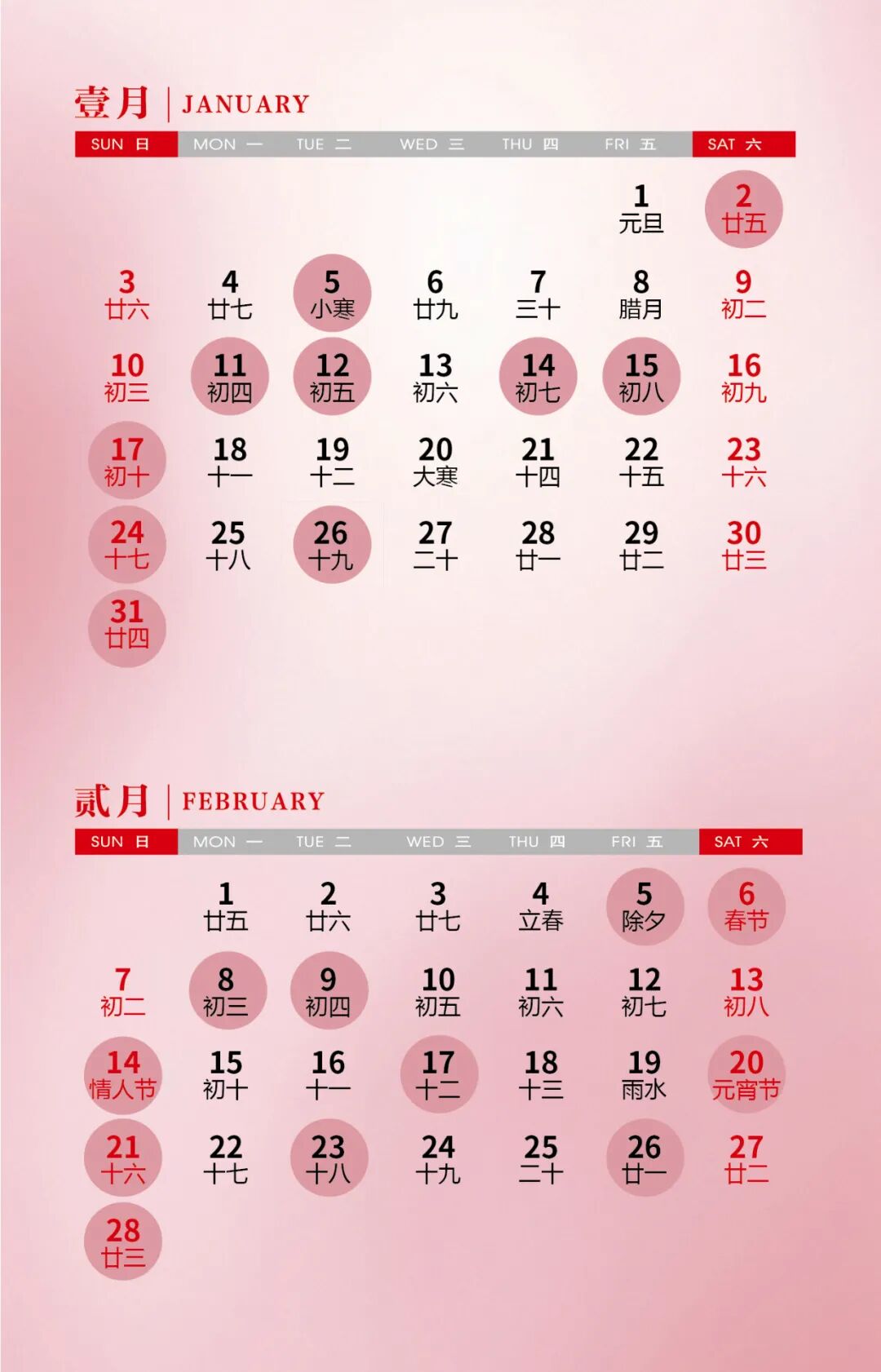 1月和2月的吉日共21天,其中在周末、节假日的吉日有11天。