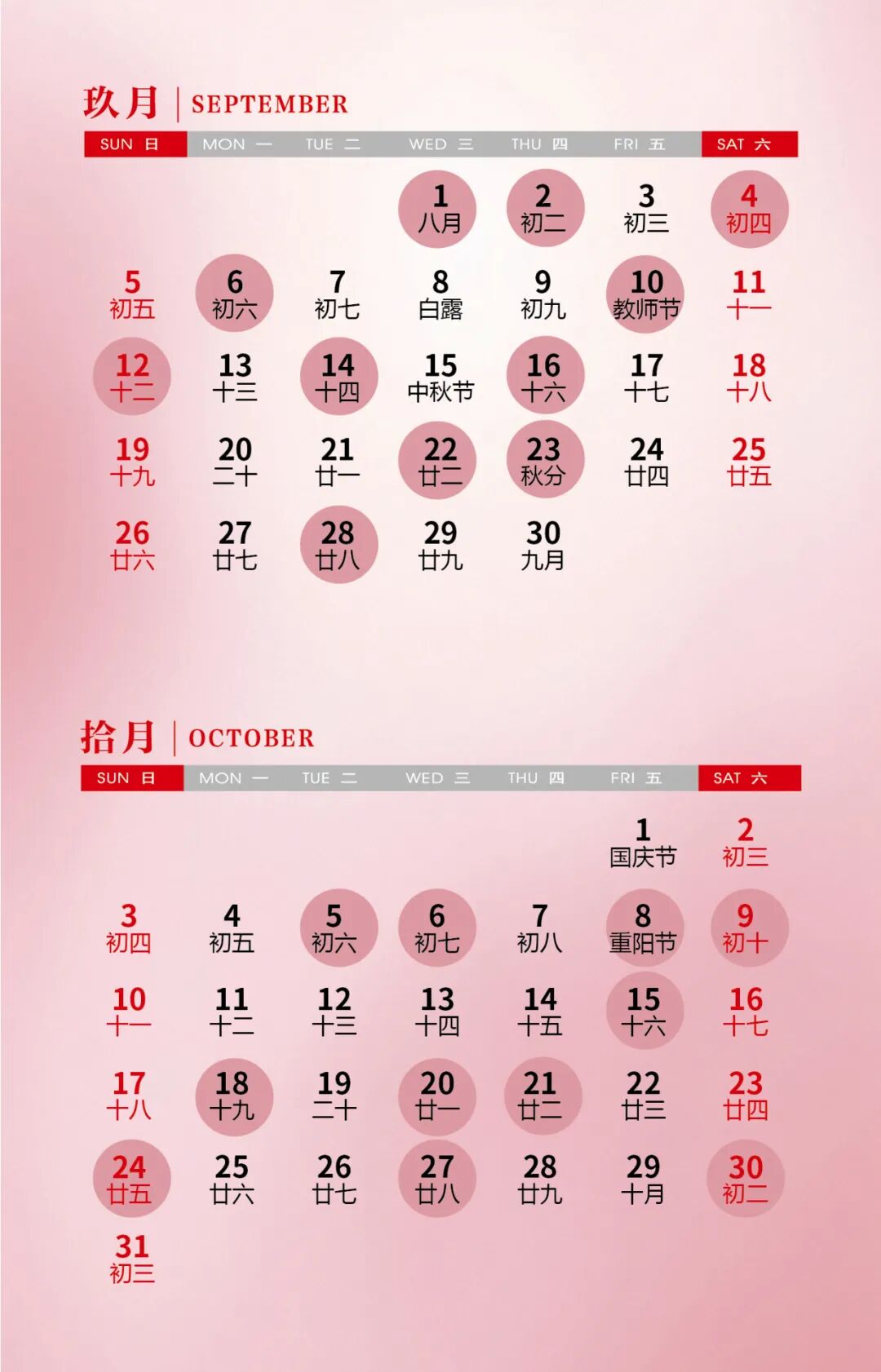 9月和10月的吉日共22天,其中在周末、节假日的吉日有7天。