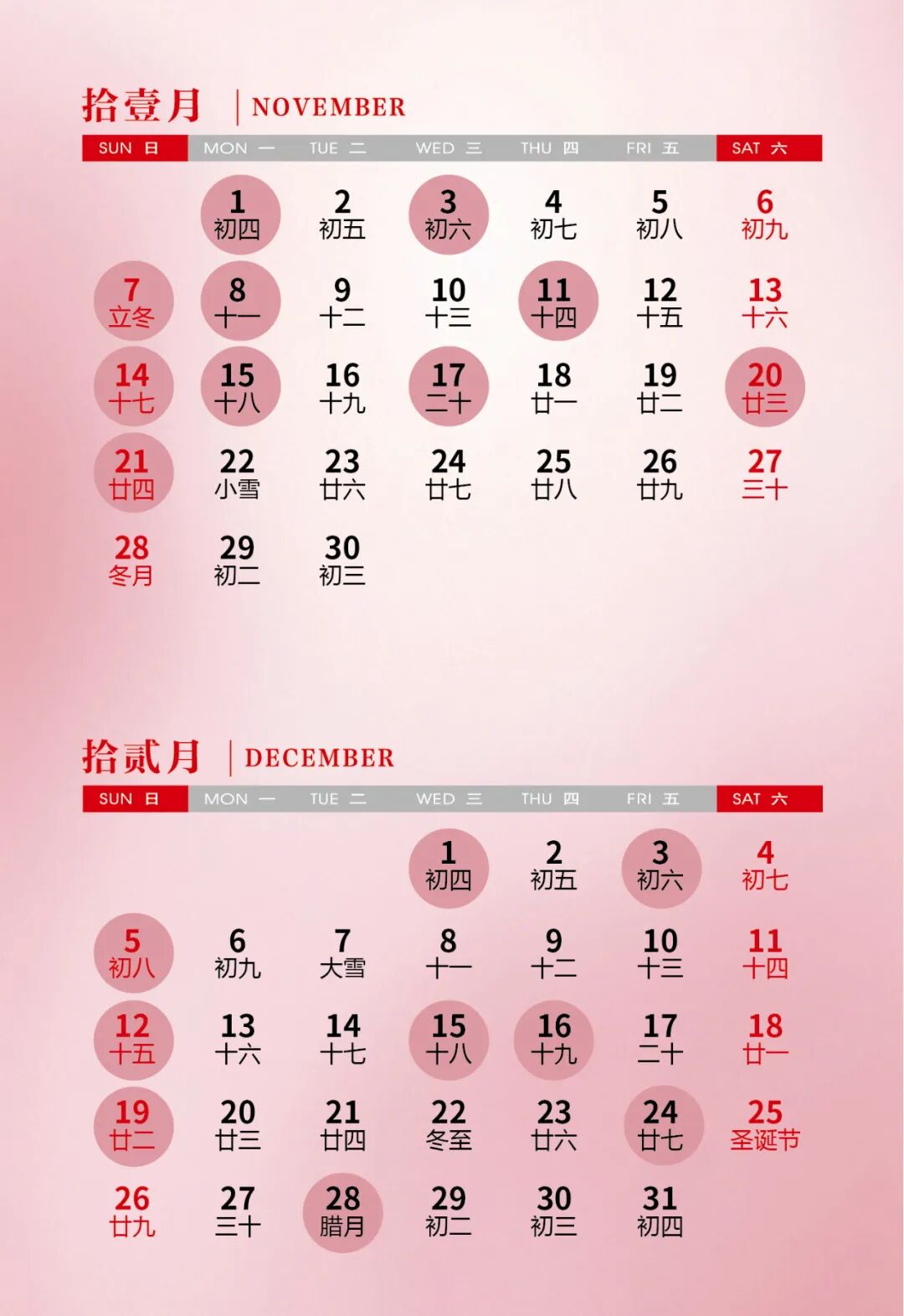11月和12月的吉日共19天,其中在周末、节假日的吉日有7天。