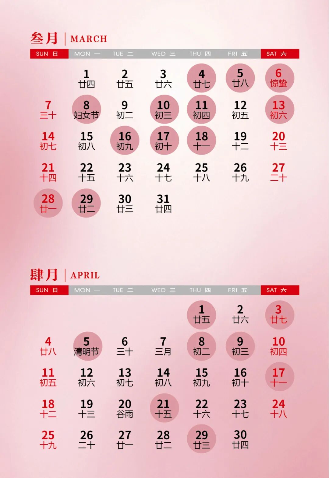 3月和4月的吉日共21天,其中在周末的吉日有5天。