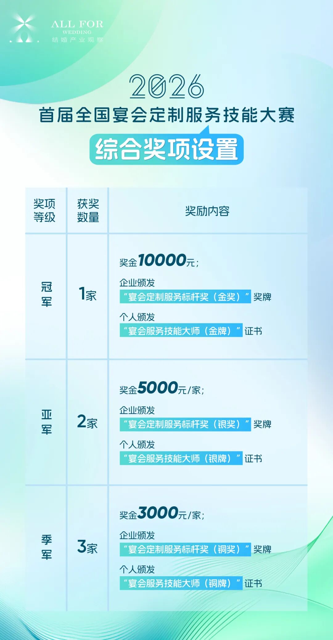 宴会定制匠心服务奖:表彰服务动作规范、细节关怀到位的参赛方;