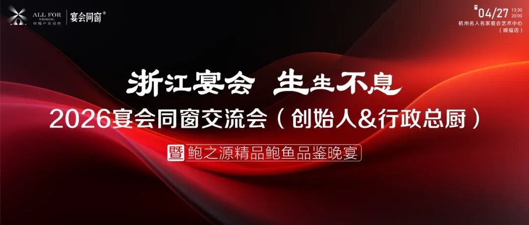 本次交流会,限额预约、不收取任何费用,欢迎浙江宴会产业的创始人&行政总厨参加!