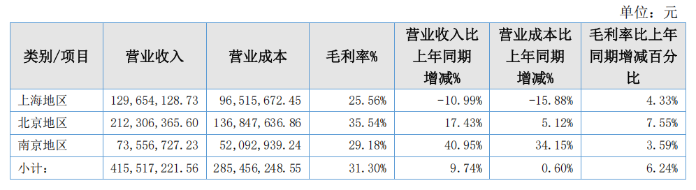 报告期内,北京区域业绩表现稳定良好,毛利率较去年同期有所改善,经营效率稳步提升。