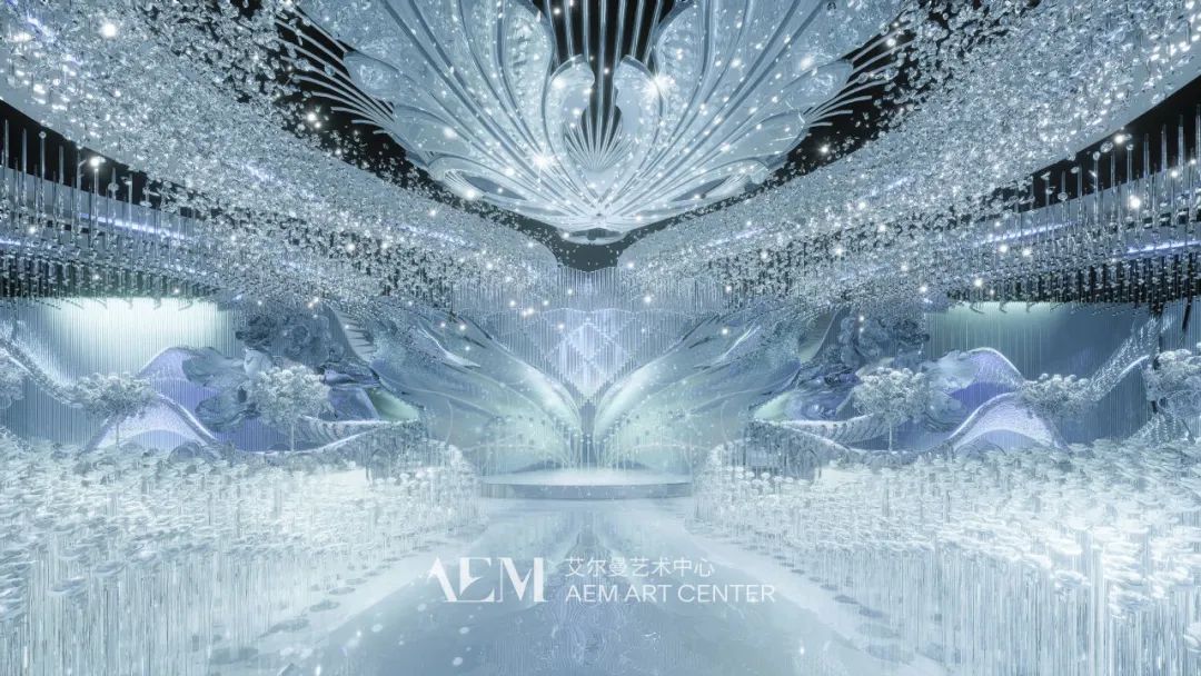 宴会厅以极光聚焦动感的羽翼一厅多变的灯光效果给予张弛有度的自由梦幻感能自如切换不同色系的灯光展示及光影互动效果