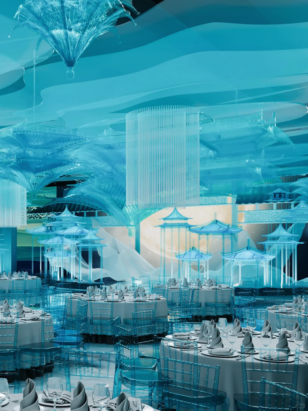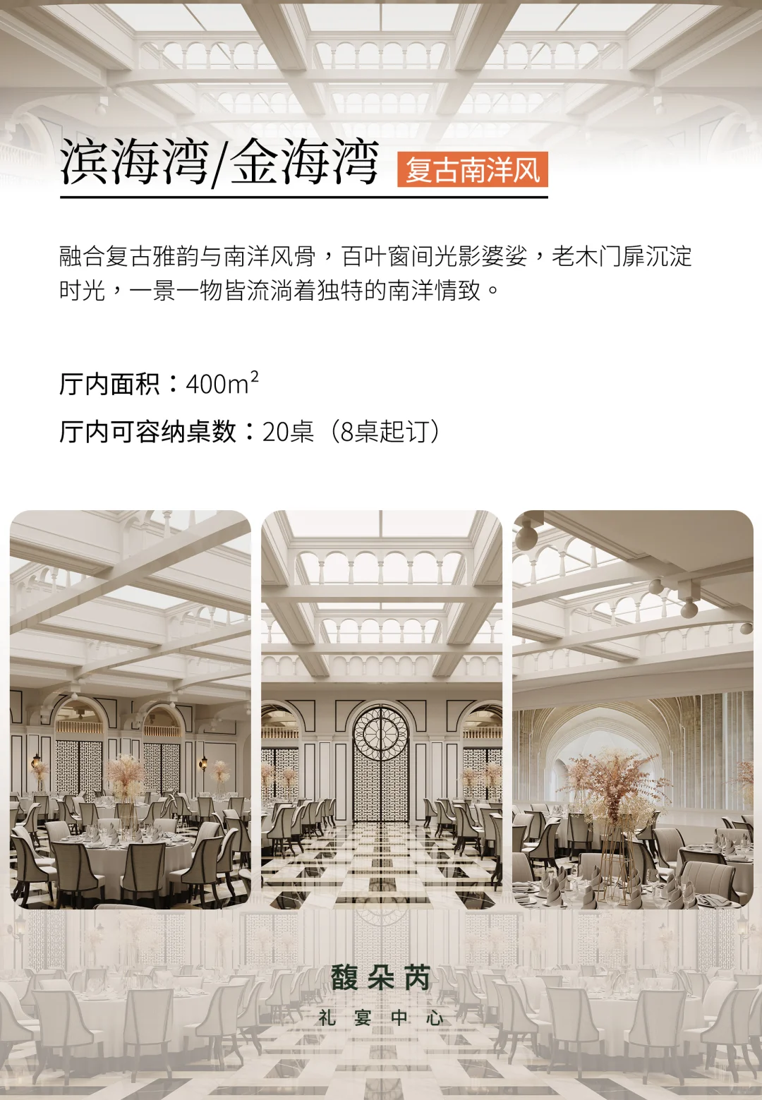 以独立Art Deco建筑重构城市婚宴美学范式,内部12座主题厅以「传奇海湾」为灵感,打造成都婚宴文化新地标。