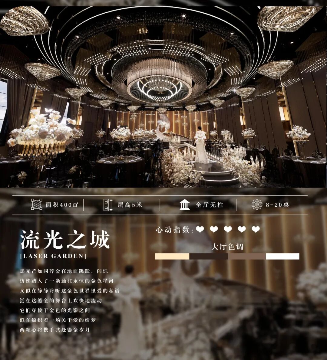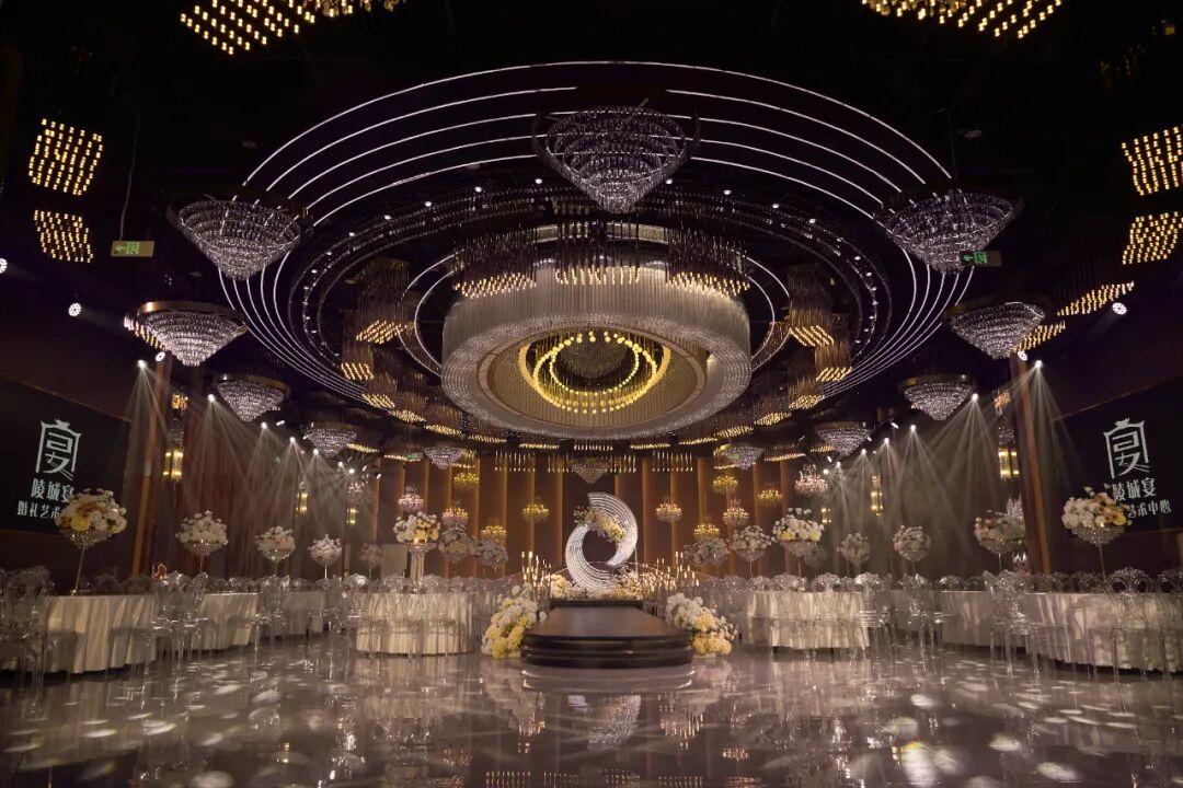 陵城宴位于山东德州,拥有10000㎡沉浸式空间,包含多个主题宴会厅,提供婚礼全流程服务。