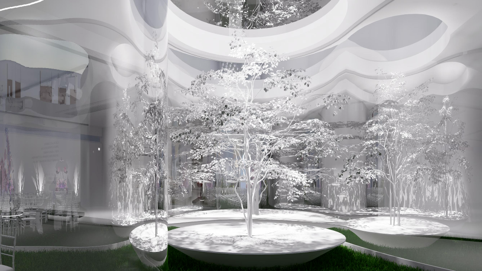 入口处的星月水池与“誓言之环”,是我们埋下的第一个隐喻:爱如月相,虽有圆缺,但循环不息。水面倒影天光与建筑,模糊了真实与虚幻的边界,也让仪式从踏入门前的那一刻,就已悄然开始。