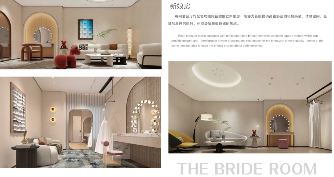 每间宴会厅均配备功能完备的独立新娘房,能够为新娘提供高雅舒适的私属换装、休息空间,更具品质感的同时,也能缓解新娘待嫁的焦虑。