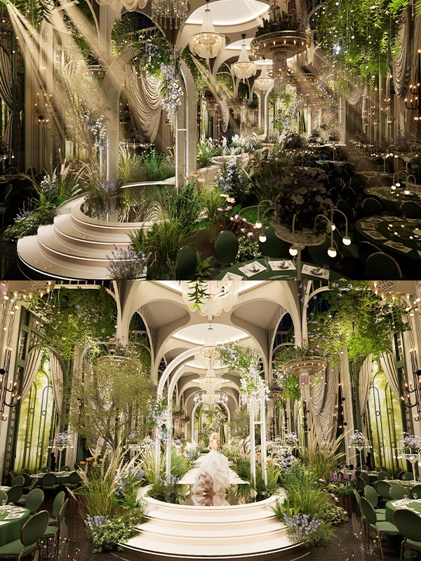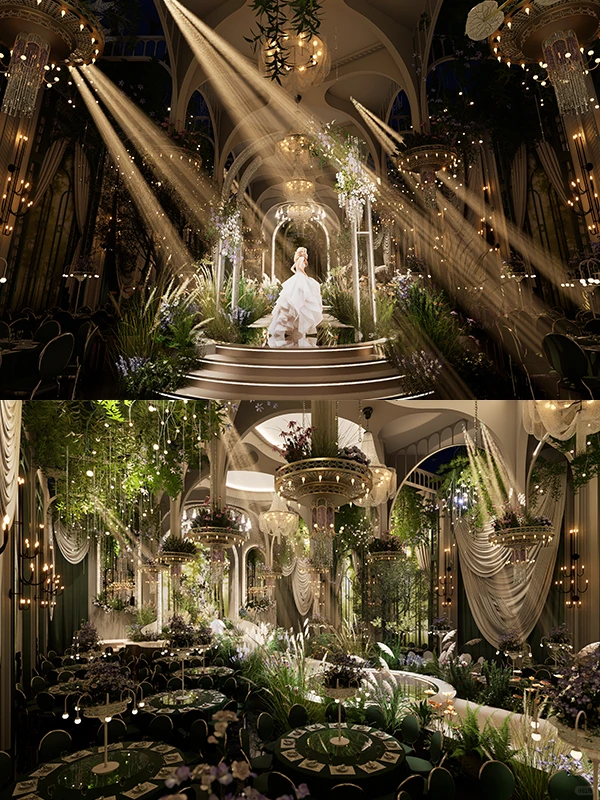 “从神秘到阳光,你只差一个想象”将大自然搬进婚礼现场,蕴含着温柔与野性,每一寸都有着生命在肆意生长,穿过幽密的森林,你就是唯一的光亮。