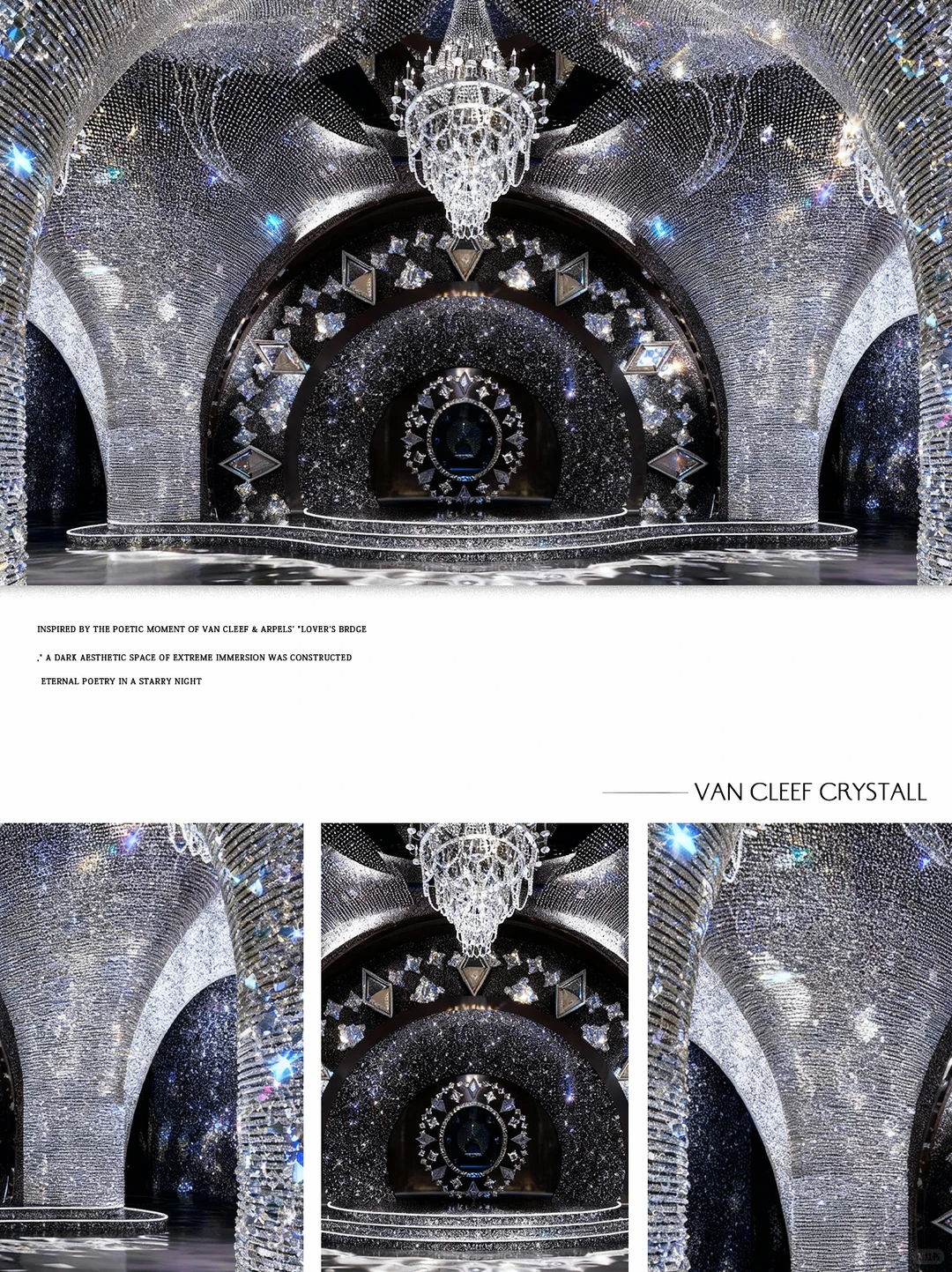 梵克雅宝钻石系列为核心元素,打造 “水晶时光拱门”