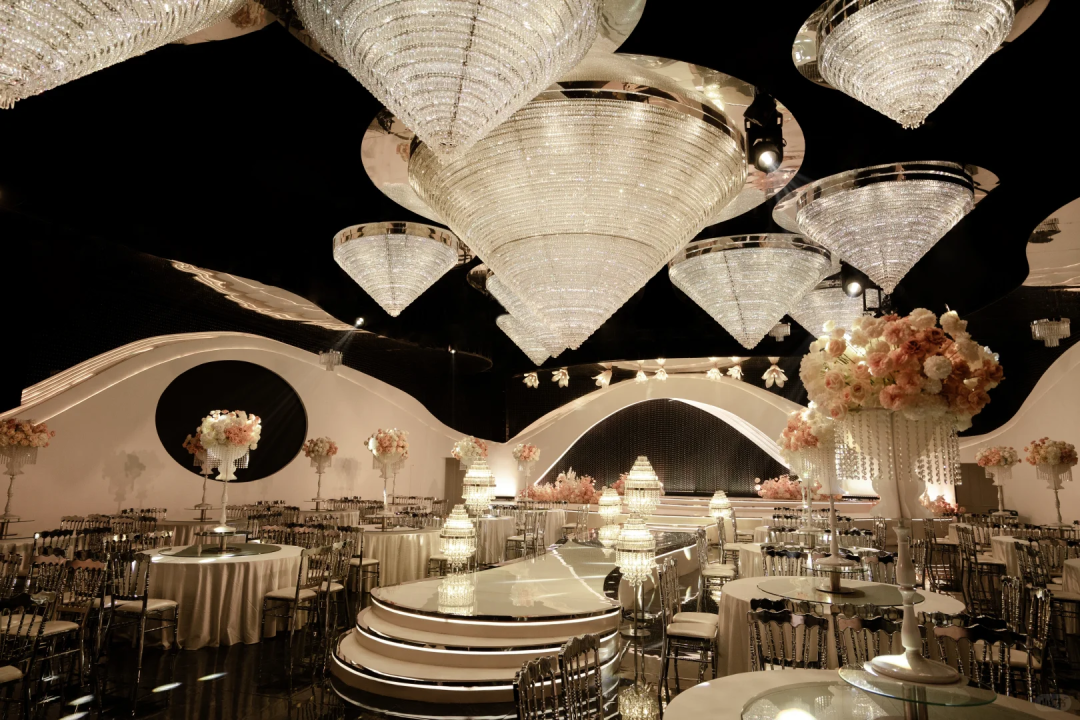 华韵礼宴文化艺术中心位于廊坊市广阳区,总面积超6万平米。8米挑高的无柱宴会厅,演唱会级别的舞美灯光,五星级主厨婚宴料理,超大免费停车场,9大宴会厅专为廊坊年轻客户提供重量级高维艺术审美的婚礼婚宴。