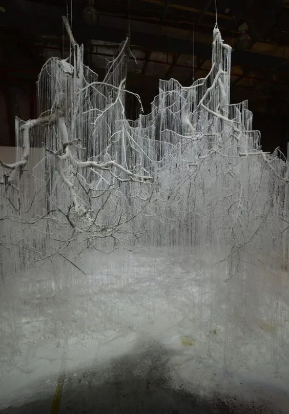也可大胆尝试放弃鲜花,放弃所有经典且传统的布置方案,用一个受艺术雕塑和前卫设计启发的婚礼吊顶或餐桌,呈现别具一格的婚礼格调。
