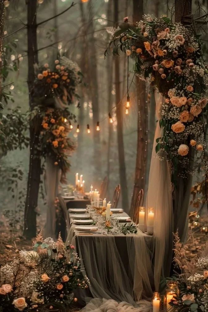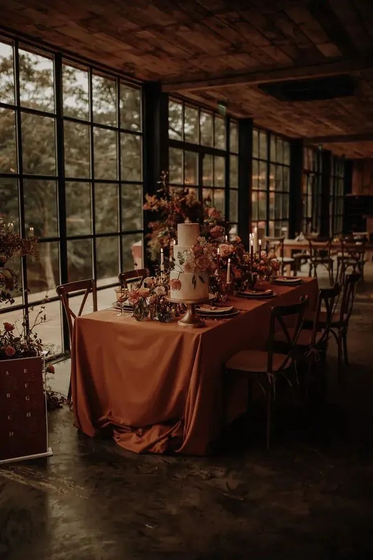 柔和的橙色和中性色调:明亮的橙色可能有点多,但柔和的色调,如赤陶土色搭配中性色,可以营造出温暖而诱人的氛围。这些颜色感觉舒适而精致,非常适合秋季婚礼。
