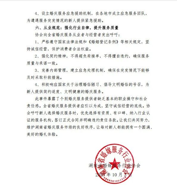 三、湖南省婚嫁行业协会发布声明