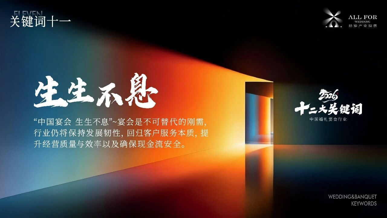 这一切,最终都将汇向同一个方向——生生不息。它不是简单的存续,而是在挑战中迭代、在压力下焕新、在传承中融合的行业生命力。婚礼宴请的情感需求永不褪色,行业的发展韧性便永不枯竭。