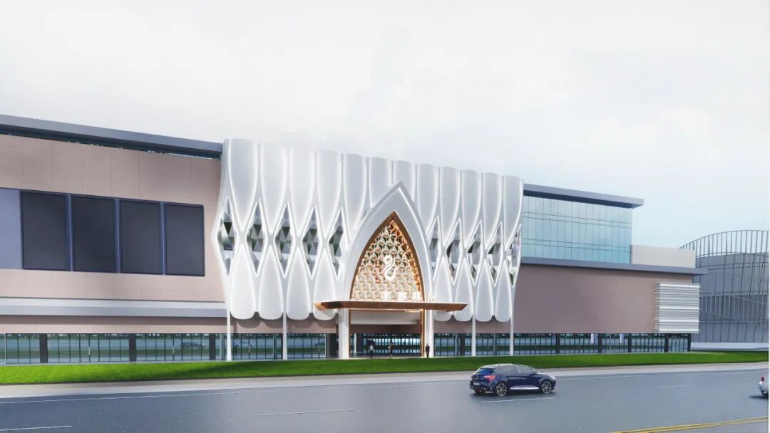 颂囍礼宴·主题宴会酒店位于山东省龙口市东城区嘉元梦想公社1号馆总占地6万㎡,拥有极具特色的720°环绕设计外立面,投资1.5亿元,是集一站式婚礼服务、婚姻教育、育儿指导、公益红娘等为一体的婚育服务综合体,从各个角度看都尽显宏伟与独特。