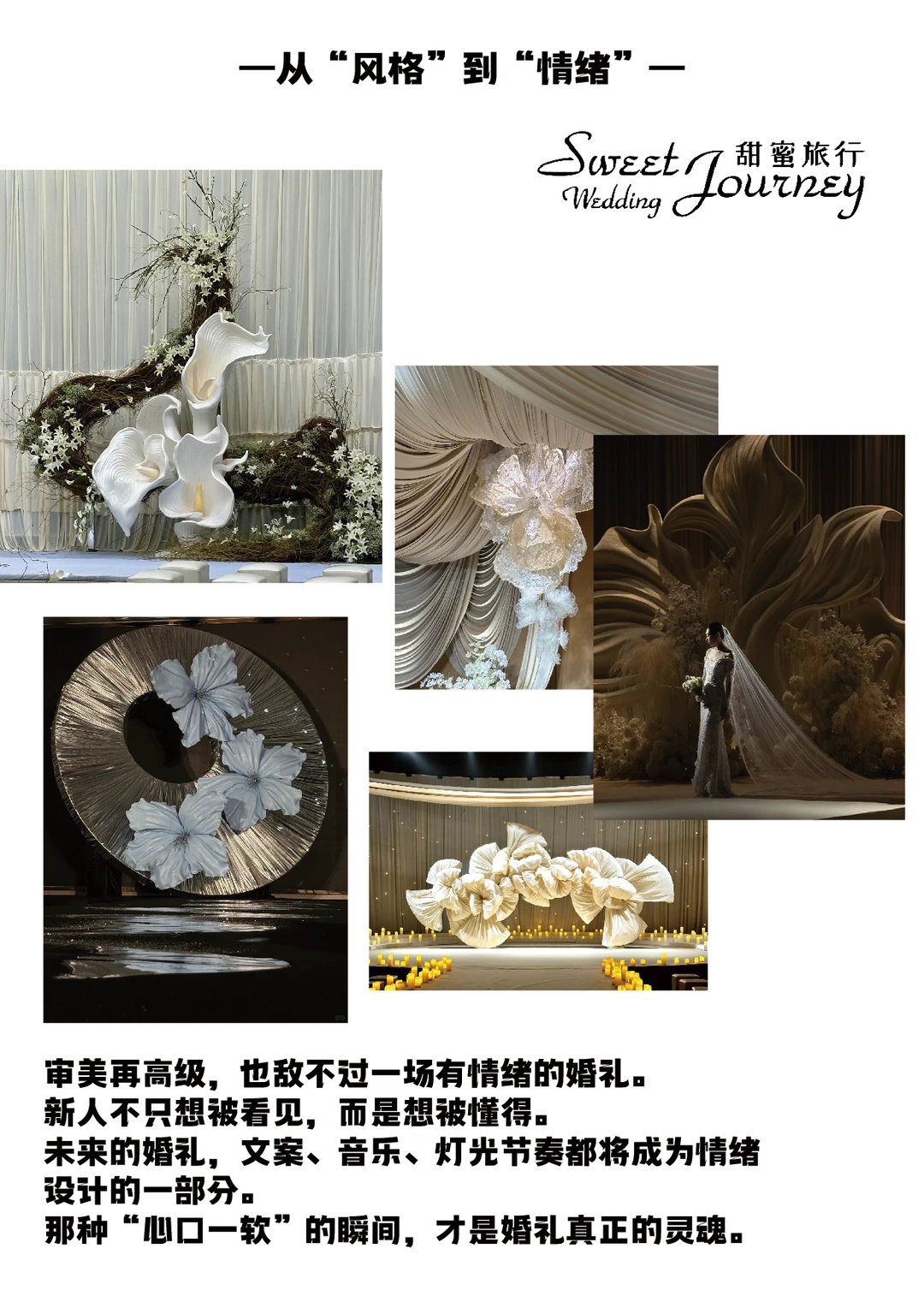 高级审美不如走心情绪,现在的婚礼更看重“被懂得”,文案、音乐、灯光节奏全是情绪设计,一个眼神一个拥抱,都是心口一软的瞬间~