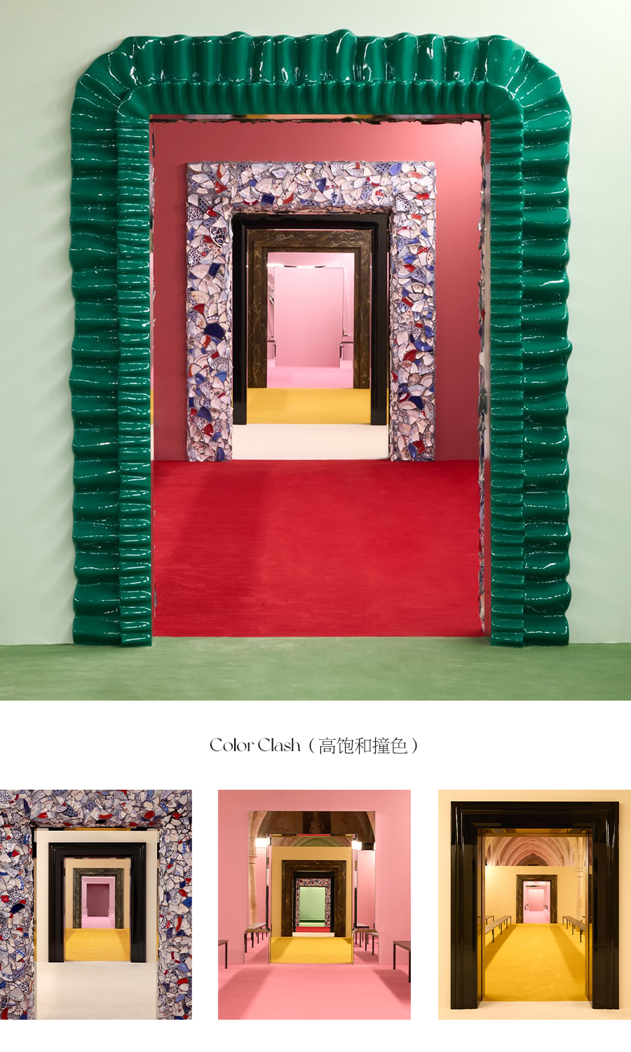 高饱和度的色彩碰撞,是空间中的“惊叹号”。利用色彩制造张力,又通过面积与灰度的统一维持平衡。