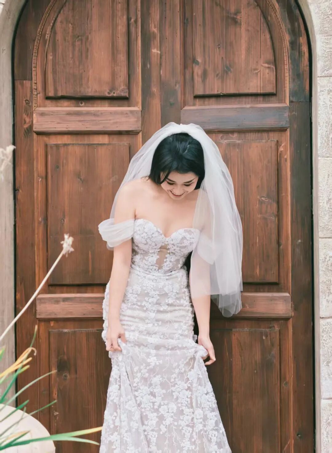 穿上婚纱的那一天,看着镜子里做完妆造的自己,美豆没忍住哭了。